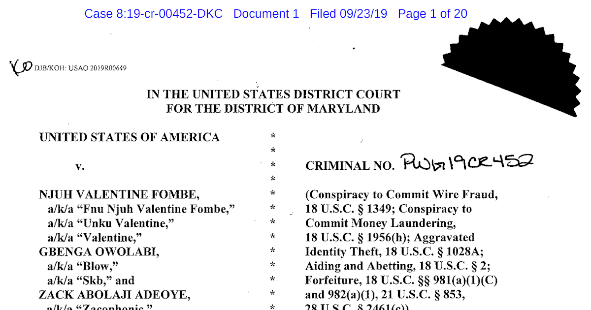 Last week the case of Valentine FOMBE was finally brought to a close. FOMBE was sentenced to 144 months in Federal prison and ordered to pay $325,856 in restitution to victims of Business Email Compromise scams that he conducted from 2016 to 2018. The various court documents present nearly as many puzzles as the sentence answers. Chief among them, what happened to the co-conspirators? and why have they not also been sentenced?