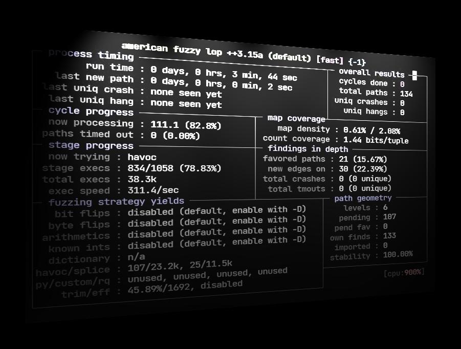 We can leave the fuzzer as is to continue fuzzing. To quit press Ctrl+C anytime. In our brief test, AFL++ wasn’t able to crash the application.