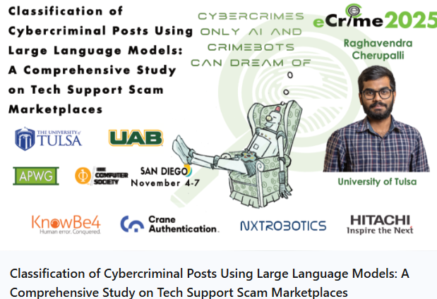 We’d be thrilled to have you attend his presentation! With this year’s conference in San Diego, it would be a great opportunity to attend an APWG eCrime Research event! Get your tickets and register here ==> https://apwg.org/events/ecrime2025